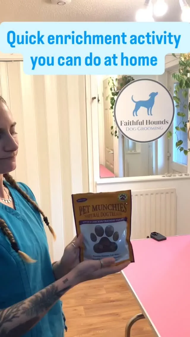Each visit begins and ends with a short enrichment activity to help your dog settle into the space and leave on a happy note. Whether that’s a sniffing game, a little play, or a simple positive interaction, I want every dog to associate grooming with something safe and enjoyable.